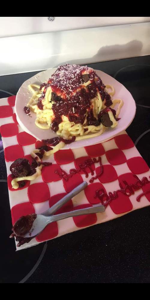 I love watching everything you create, review, and offer advice on. You are incredibly talented. Thank you for being awesome. I totally copied this spaghetti cake, my plate and flatware is also edible and the red squares on the cardboard are edible as well.