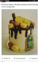 So, please disregard my yesterday’s request).This is the cake with strawberry mousse and lemon curd according to your recipy, I’ve covered it with the German buttercream and ganage (ganage is the only thing here i’m not proud for). This cake was made for the colonel whose wife wants him to become a general asap). The shoulder straps are made from white chocolate dough.