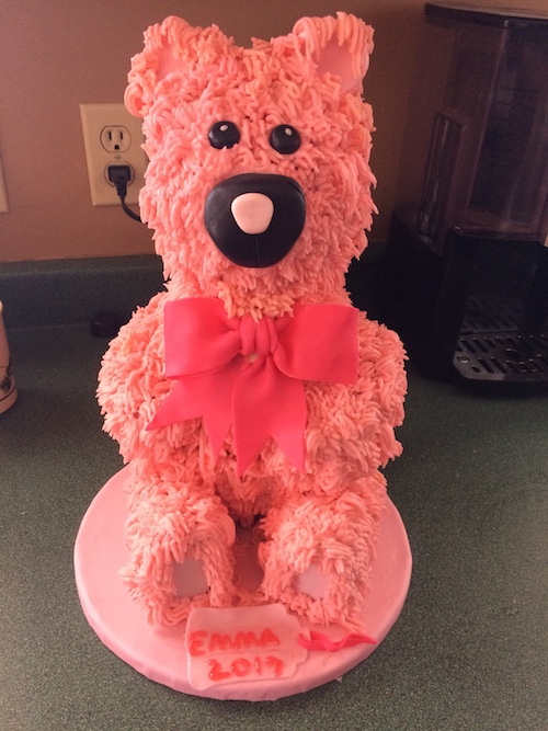 Here is the teddy bear cake I made using your guidence.Thank you soooo much…I made him for a friends birthday and EVERYONE loved him!! His head was made of strawberry cake with vanilla buttercream and his body was german chocolate