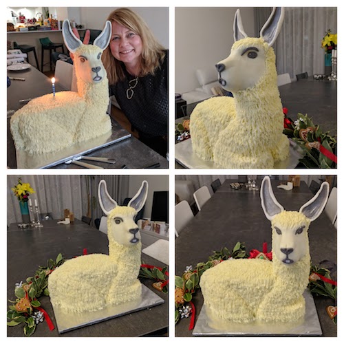 My first sculpted cake! And it’s all thanks to you, Ann. Lemmy the Lemony Llama was inspired mostly by your teddy cake, but I also borrowed ideas from your avengers and my little pony cakes. I created some makeshift templates by sketching front, back and side views based on google photos of llamas. I used your sponge cake recipe with lemon drizzle and your lemon ganache for the body and neck. The head took three attempts and is made of rice crispies and marshmallows. And the cake board features a steel support. Lemmy was a huge hit with my other half and the family. I’d never thought of baking and decorating a cake like this until I stumbled upon your youtube channel just a couple of months ago. Your videos are fabulous, making everything seem so simple and achievable. You are a star and an inspiration and I cannot thank you enough for your help in making Lemmy and my other half’s birthday such a success.