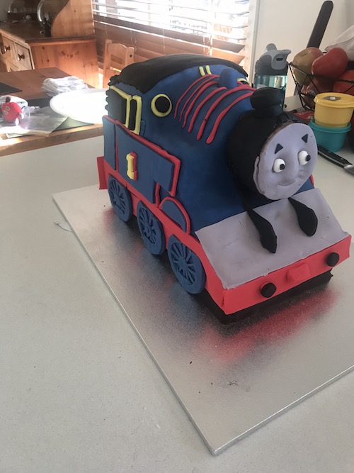 I have never worked with fondant before, and found all the instructions quite easy to follow – however, made a tiny whoops at the end (and I’m gonna to blame this on fatigue as I had to juggle 1yo twins and a 3yo to bake under siege), but I ended up not adding an extra bit of cake for the face. These “mistakes” make it memorable though, and I creatively jiggled it a bit! My 21yo LOVED the effort of touching base with his childhood obsession and my Thomas was a smash hit! Thankyou for giving me the ability to do something this creative ?