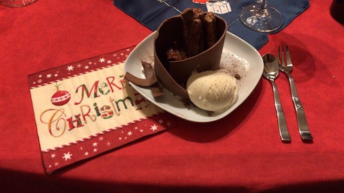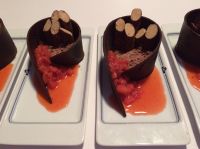 The swirl took some time to get it right, but all in all the end result was pretty good and well appreciated by the guests. We used dark chocolate for the swirls because we like its taste better.