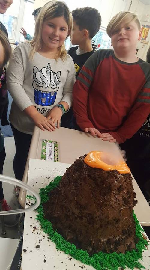 I made this for my daughter’s class when they were done learning about volcanos!! Thank you so much for posting this! I should have made the cake steeper so the chocolate ran down easier..